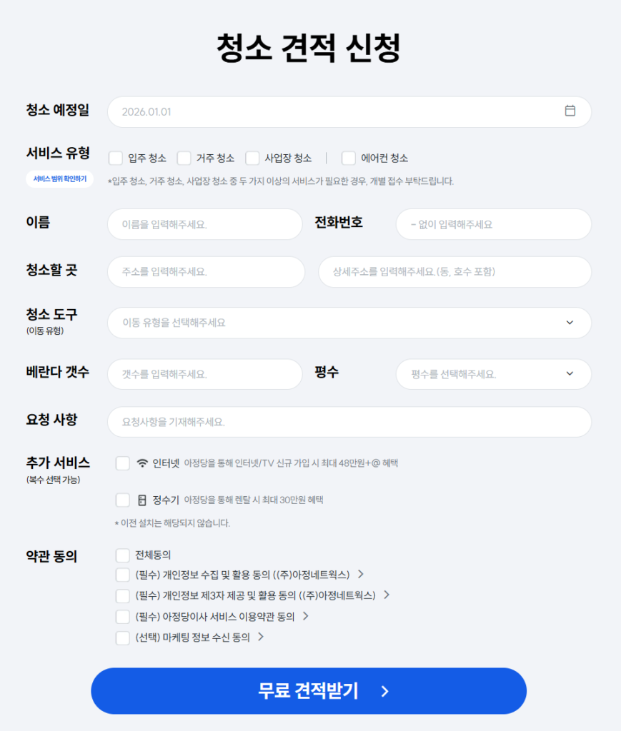 | 바른청소 양평 | 추가 요금 요구가 전혀 없는 정찰제로 운영되어 결제 단계에서 고객 만족도가 매우 높음 |